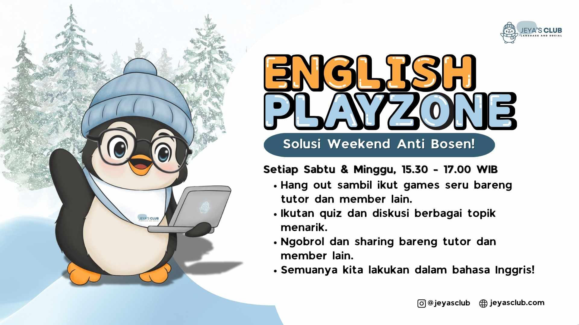 Bingung cari kegiatan untuk ngisi waktu luang kamu saat weekend? Yuk hang out sambil main dan belajar bareng di English Playzone!