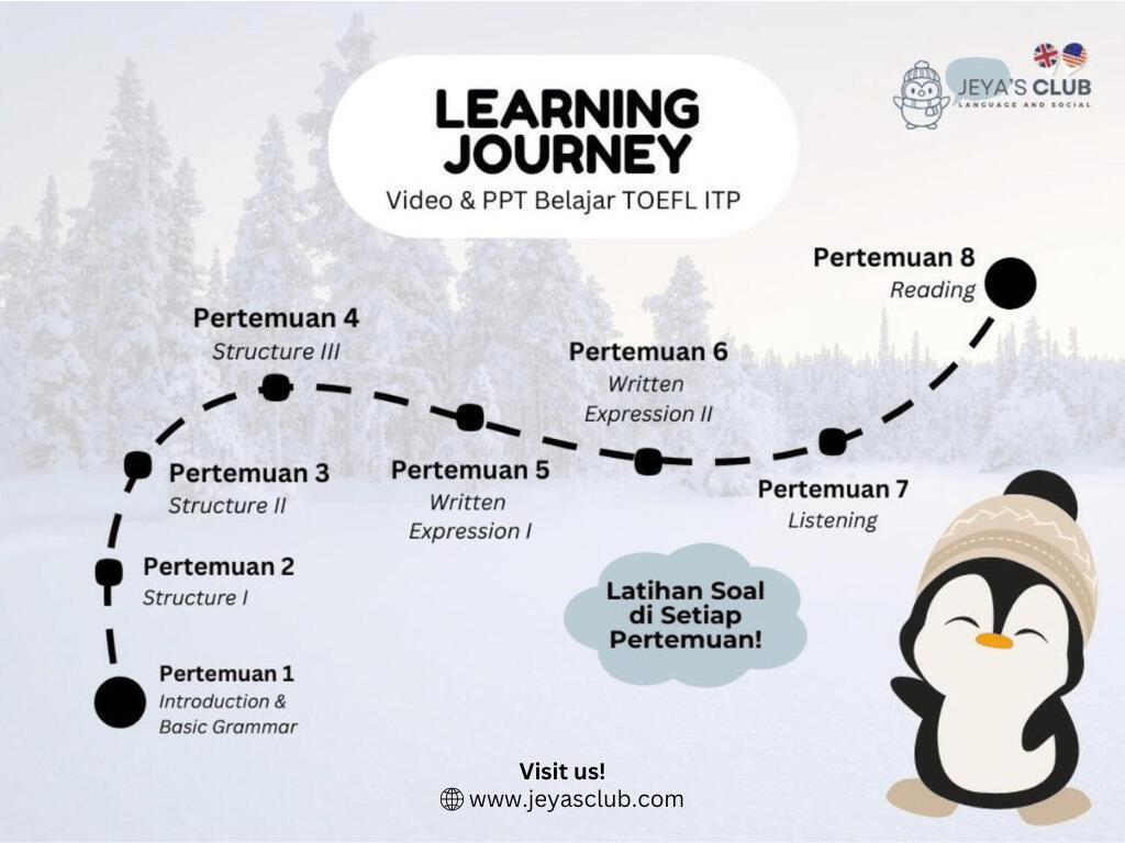 Mau belajar TOEFL tapi bingung mulai dari mana? Yuk belajar dari materi TOEFL Jeya's English Club yang sudah disusun komprehensif dalam 8 set video, materi PPT belajar, serta latihan soal!