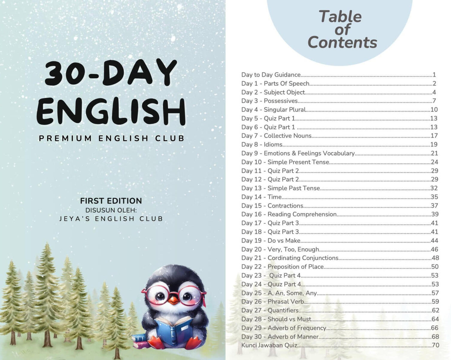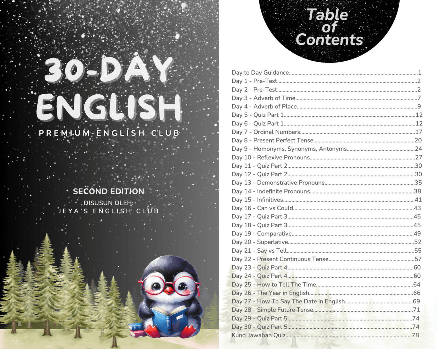 Eits! Jangan berhenti di situ aja, edisi 2 dari modul 30-Day English juga wajib jadi panduan belajar kamu! Berisi lanjutan materi dari modul edisi 1, pastinya bikin English kamu makin mantep!