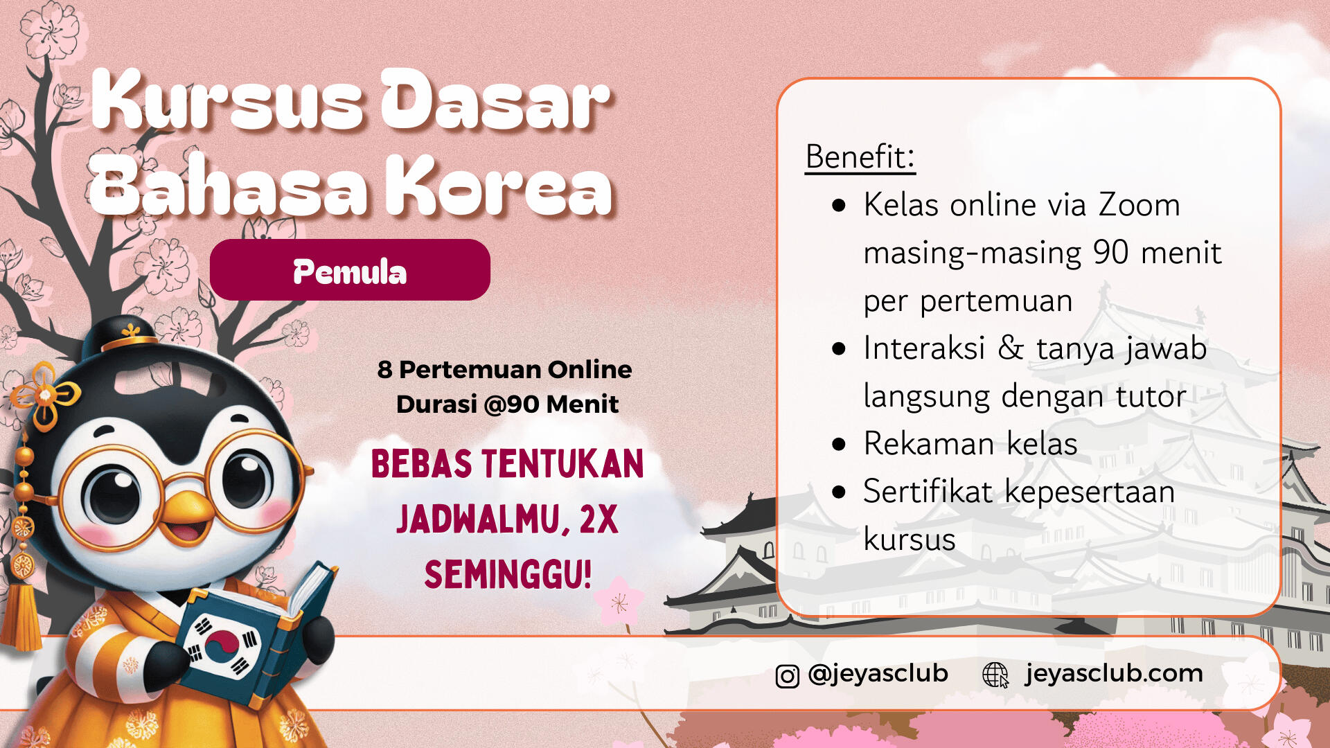 Halo, Learners!Yuk join Premium Korean Club by Jeya's Club karena di dalam club tersebut kamu bisa ikut berbagai aktivitas belajar menarik loh, yaitu: