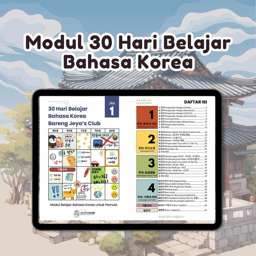Untuk menjaga hak cipta, modul Jeya's Club tidak diperkenankan untuk didownload maupun diprint. Namun untuk modul 30 Hari Belajar Bahasa Korea kamu akan mendapatkan workbook yang bisa didownload dan diprint untuk latihan soal.
