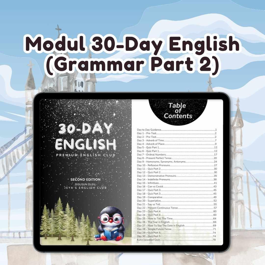Eits! Jangan berhenti di situ aja, edisi 2 dari modul 30-Day English juga wajib jadi panduan belajar kamu! Berisi lanjutan materi dari modul edisi 1, pastinya bikin English kamu makin mantep!